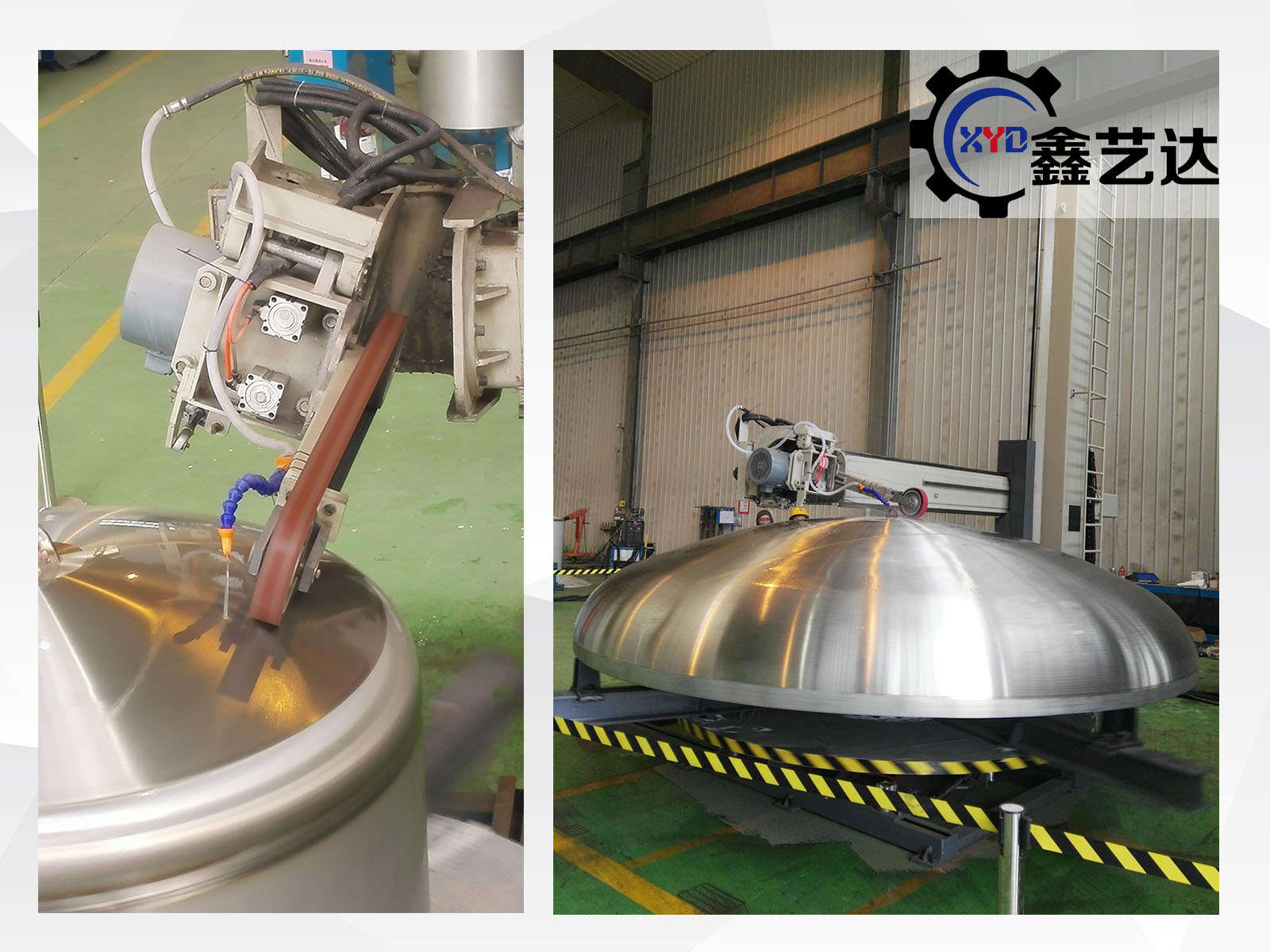 設(shè)備主要用于拋磨不銹鋼筒體、錐體和封頭及連體件內(nèi)外壁的磨削拋光,由十字架主機(jī)、磨頭組件、冷卻循環(huán)系統(tǒng)、電氣控制系統(tǒng)、氣動(dòng)系統(tǒng)工件轉(zhuǎn)臺(tái)組成。