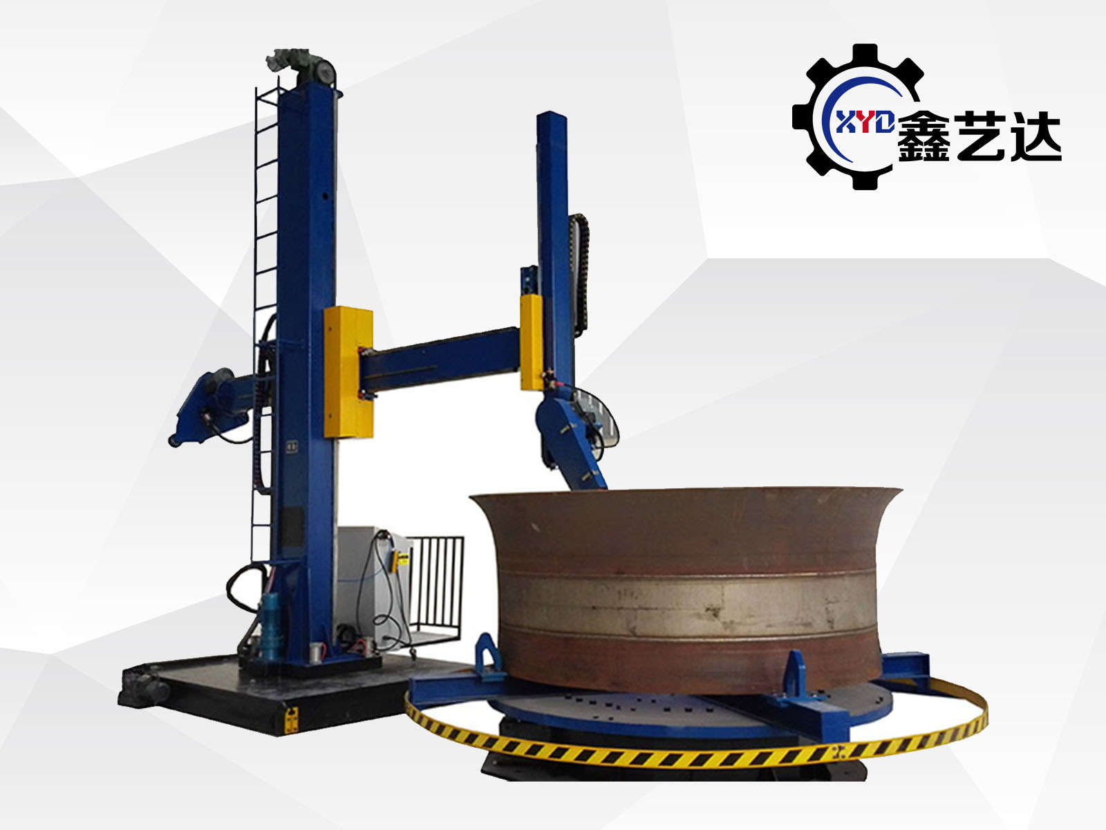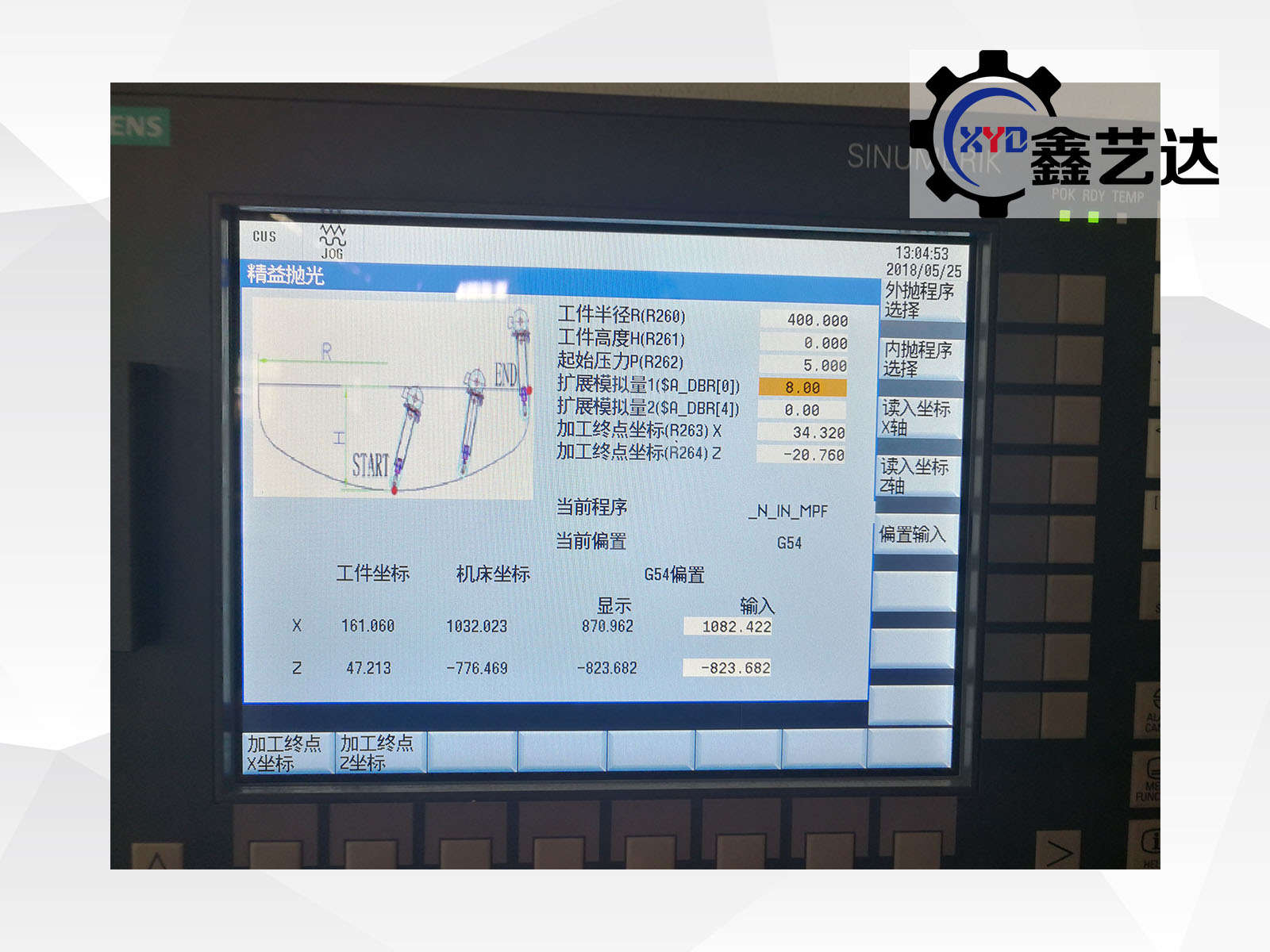 工件安裝在轉臺上旋轉,立柱和橫梁用伺服控制橫梁水平,上下移動,通過數(shù)控程序控制,帶動磨頭按照工件輪廓走軌跡,全自動運行,提高工作效率。