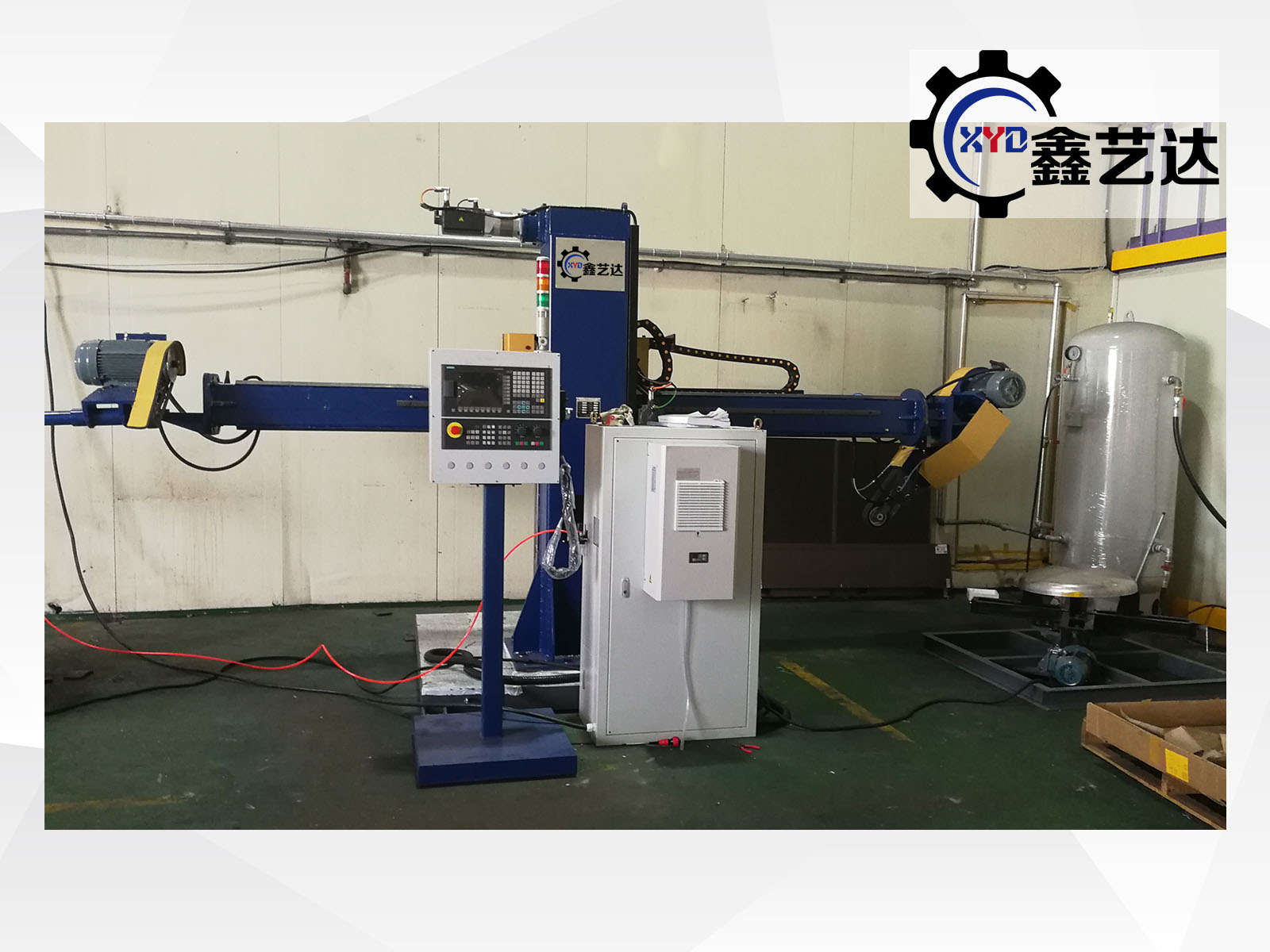 該數(shù)控拋光機設備主要用于拋磨不銹鋼筒體、錐體和封頭內外壁的磨削拋光,由十字架主機、磨頭組件、電氣控制系統(tǒng)、氣動系統(tǒng)工件轉臺組成。
