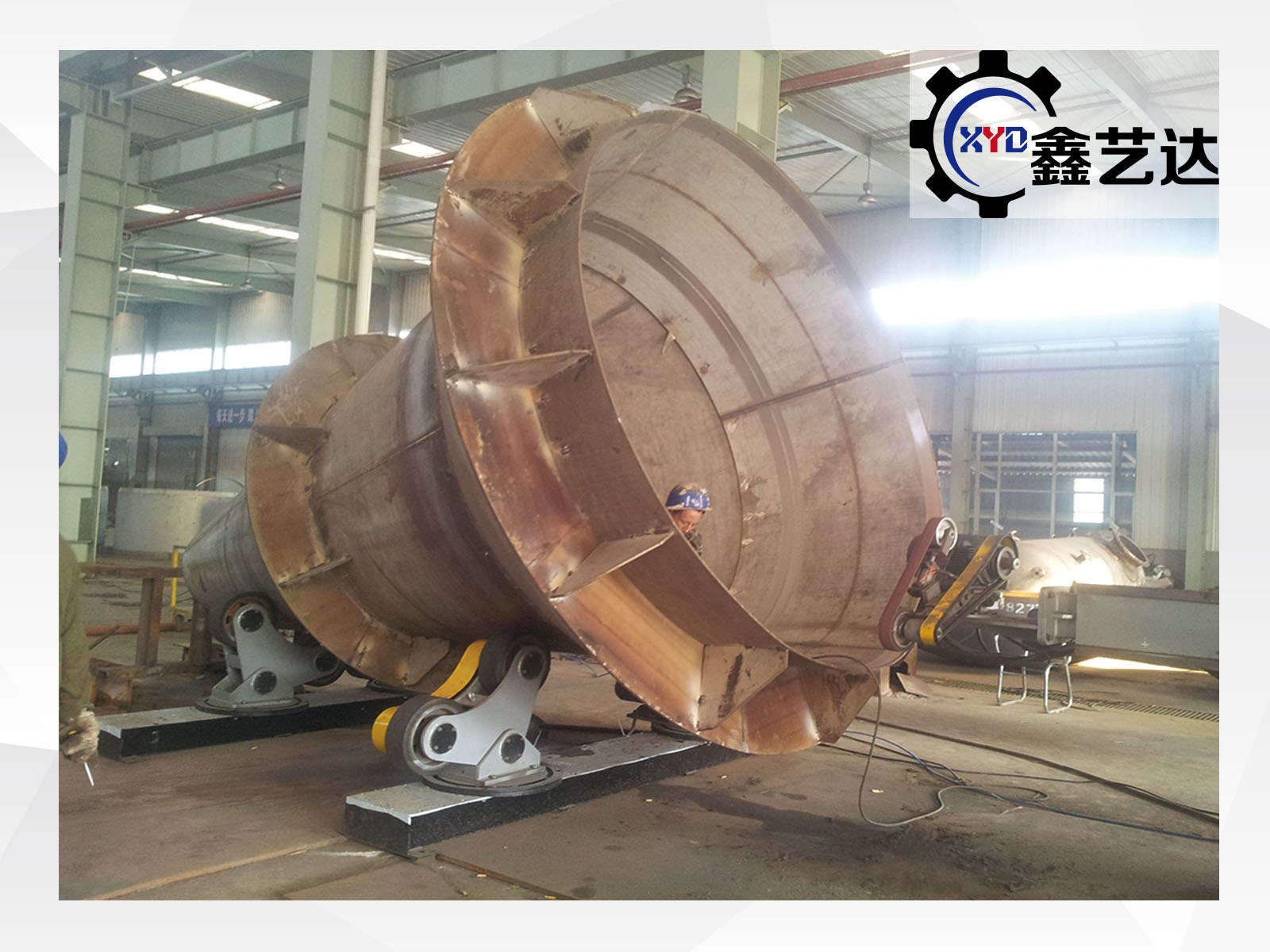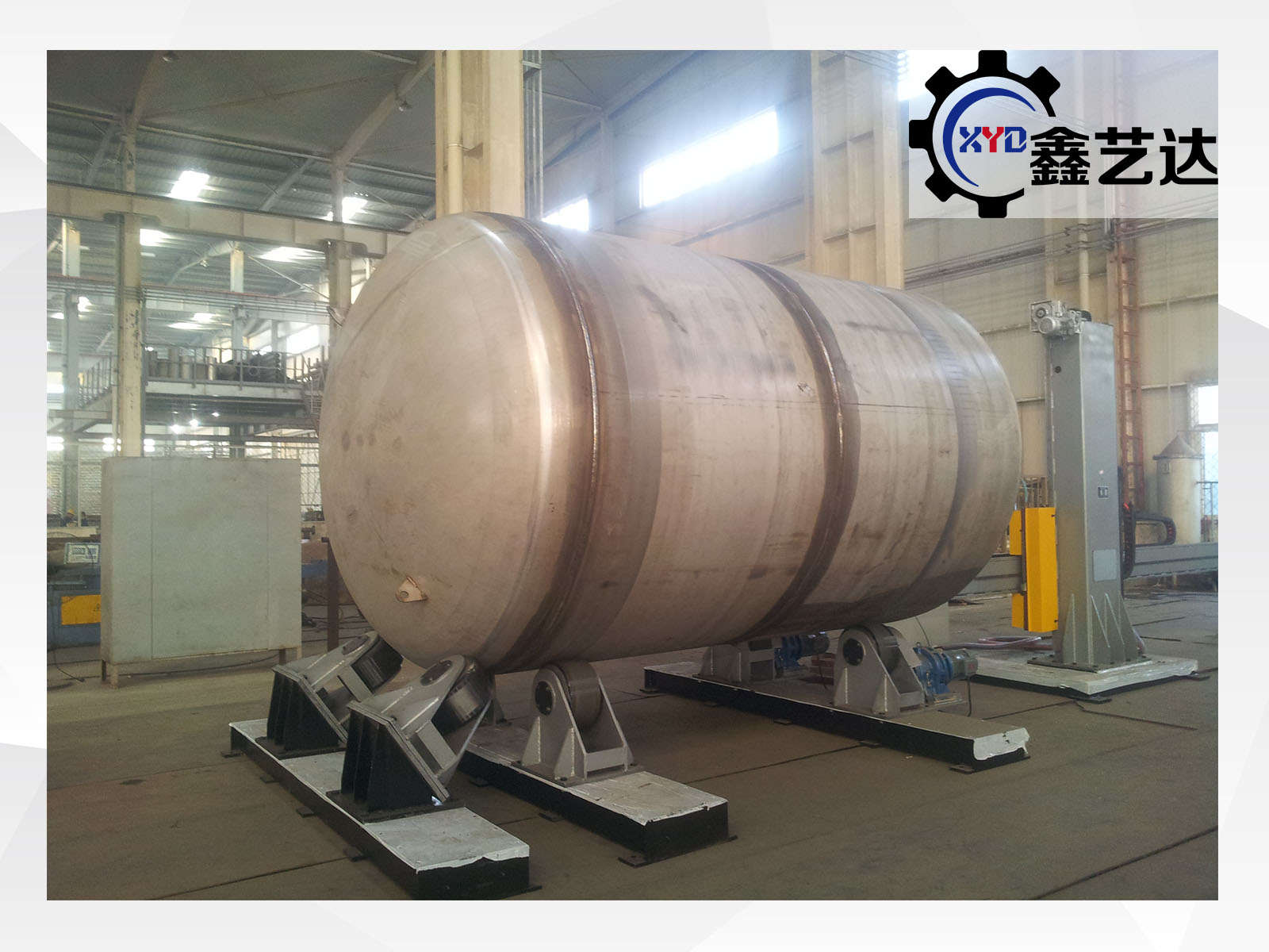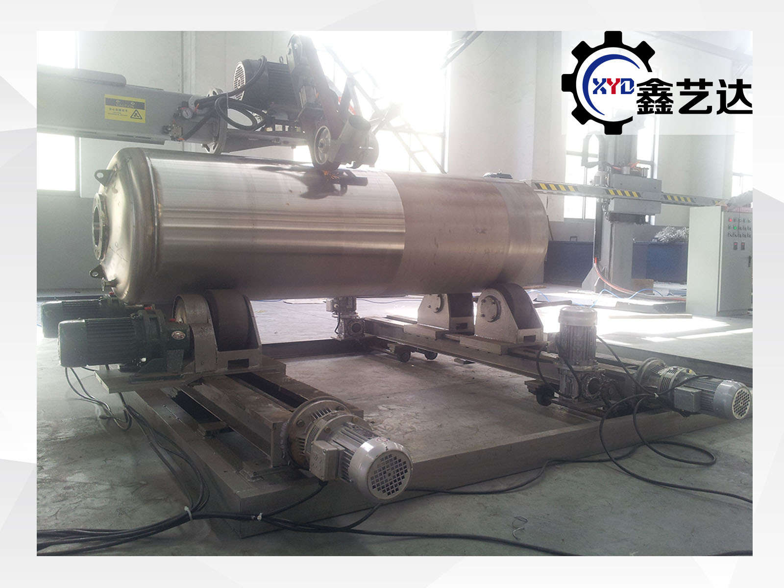 罐體轉(zhuǎn)臺,載重2-10噸,φ500-φ4500 mm范圍可調(diào),采用齒輪減速機(jī)電機(jī)驅(qū)動,帶動罐體臥式旋轉(zhuǎn),速度變頻可調(diào)。