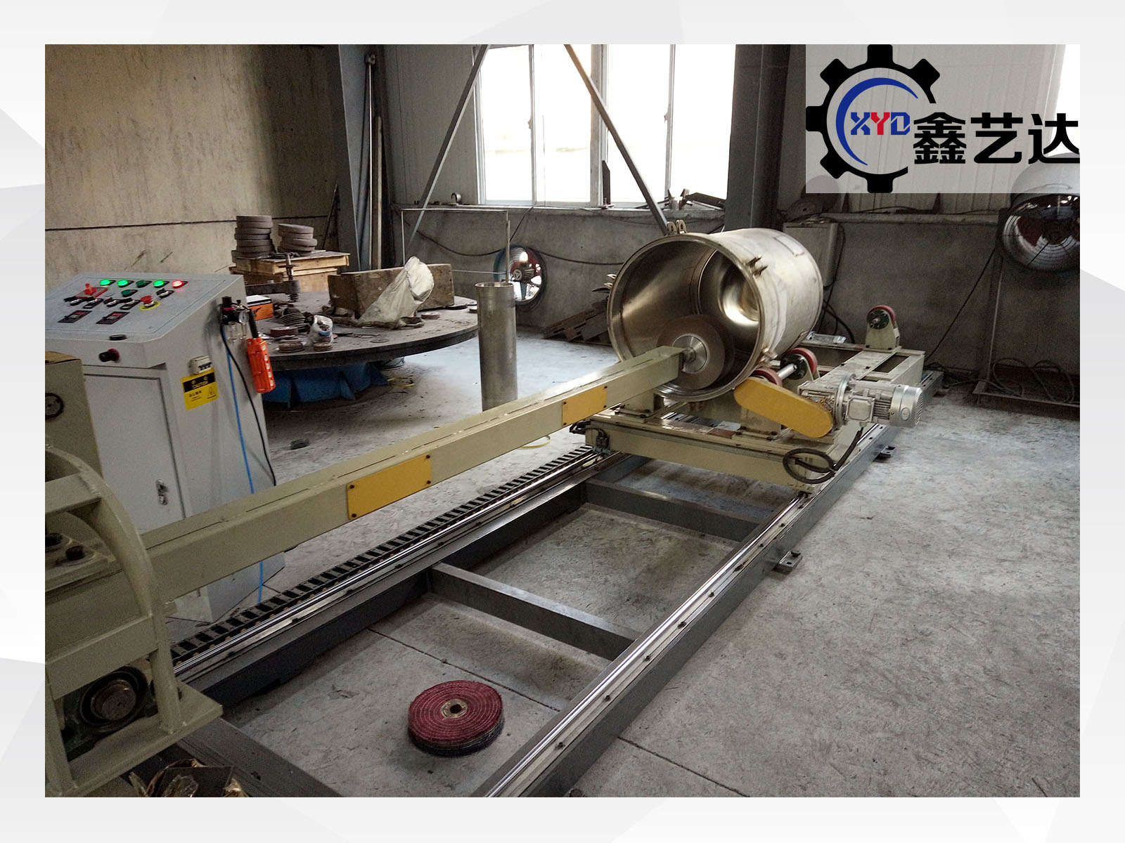 內(nèi)拋光直徑:300mm-1000mm,長度2500mm,立柱行走、罐體旋轉(zhuǎn),一共兩臺變頻器,配罐體旋轉(zhuǎn)架長2000mm,寬1500mm,載重500kg